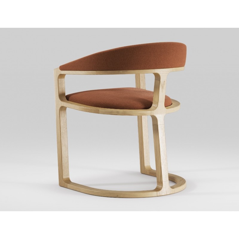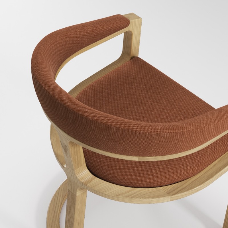 Chaise simple mais interconnectée avec une structure en noyer ou en chêne massif, conçue pour être perçue comme un ensemble homogène. Les bras, les pieds, l'assise et l'armature dorsale ne sont pas des parties séparées, mais un ensemble harmonieux, inspiré par le concept esthétique japonais de Bi (totalité dans les détails).