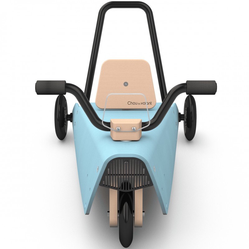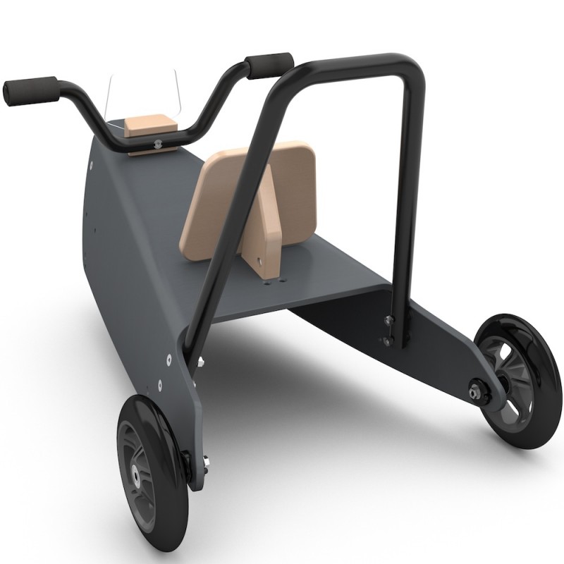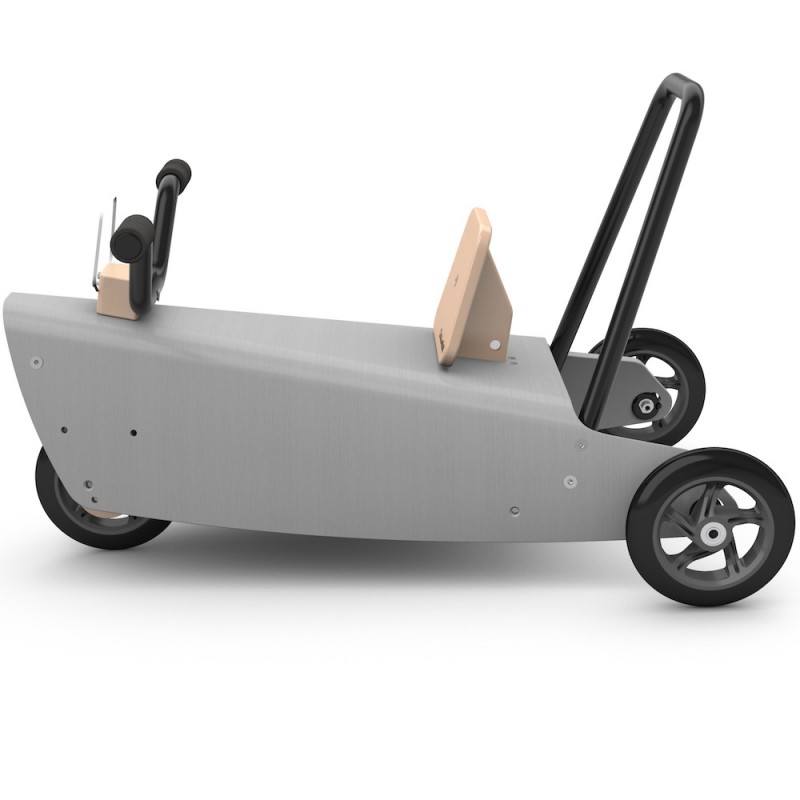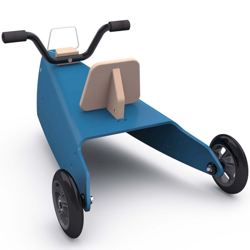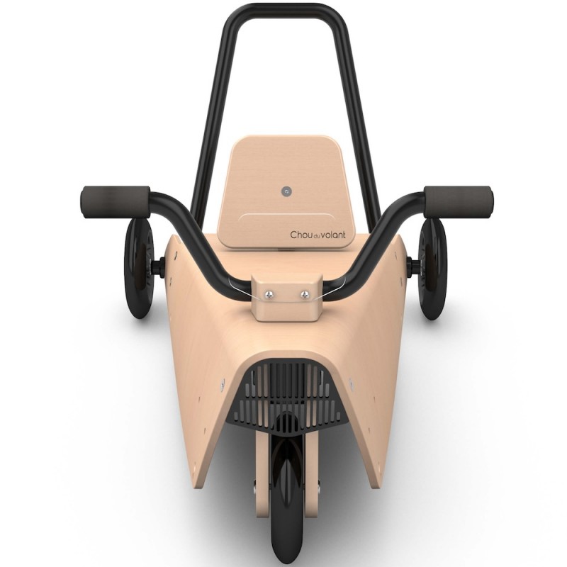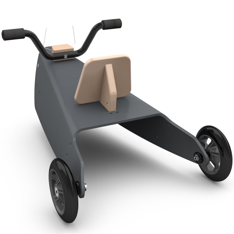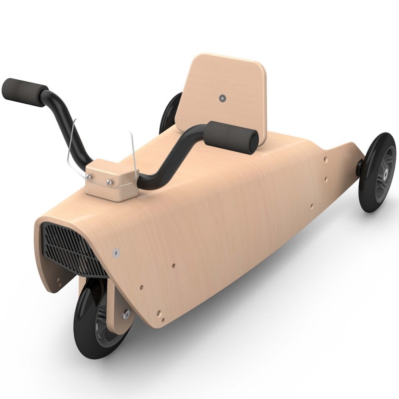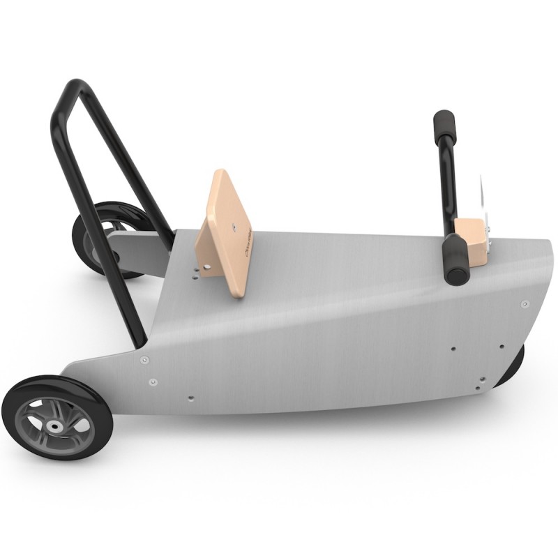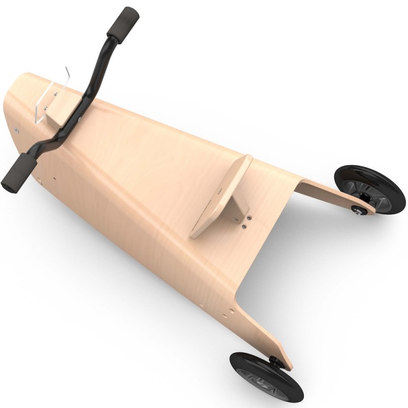 - Pièce principale (« plateforme »), fourche de direction (mobile, avec une butée afin de limiter l'angle de braquage), platine de direction, dossier pour l’assise en hêtre massif (100 % naturel issu de forêts françaises gérées durablement).