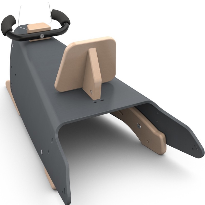 Cette voiture à bascule peut être utilisée en position bascule ou en position statique, grâce à la pièce patin support réversible en hêtre naturel (2 fonctions en 1).