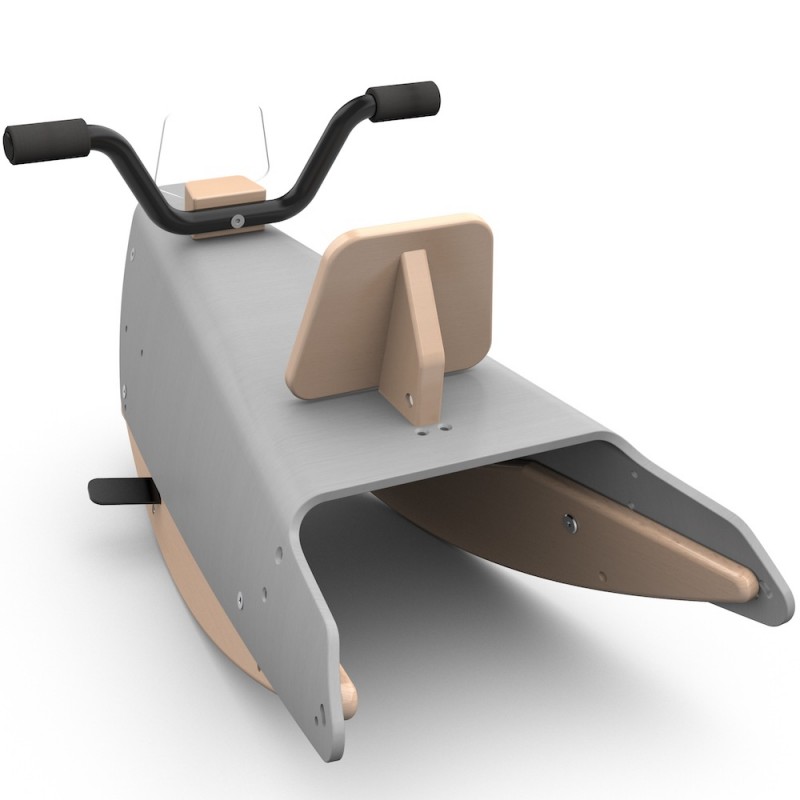 Ce jouet peut être utilisé soit en position bascule, soit en position assise stable (pour les jeunes enfants), grâce à l'emploi d'une pièce support réversible en hêtre naturel.