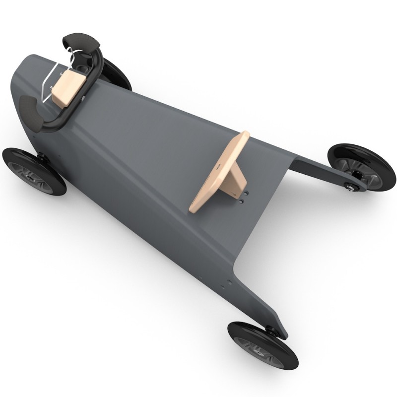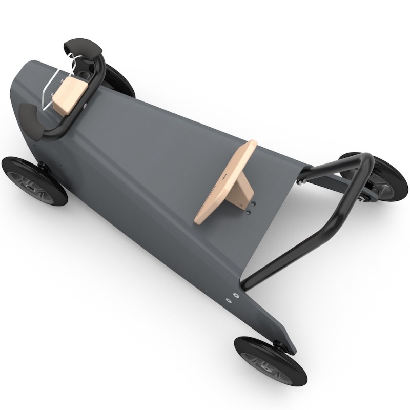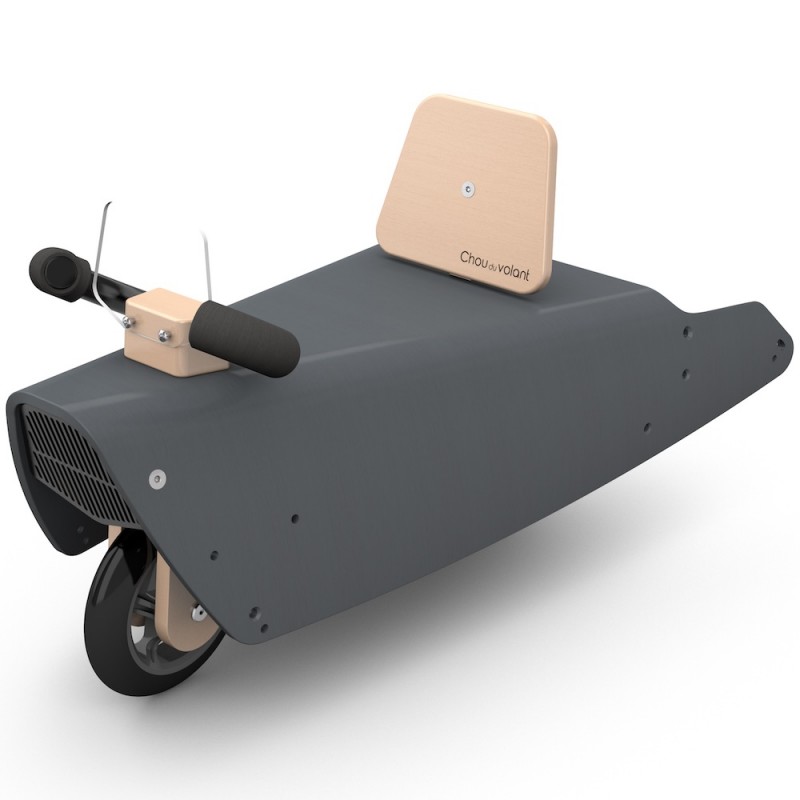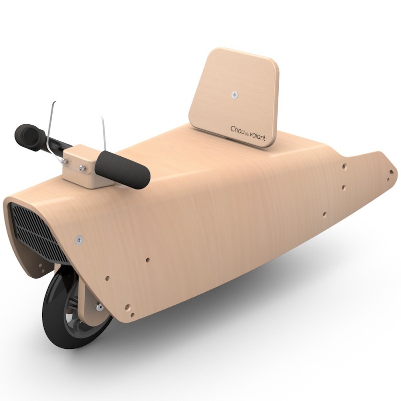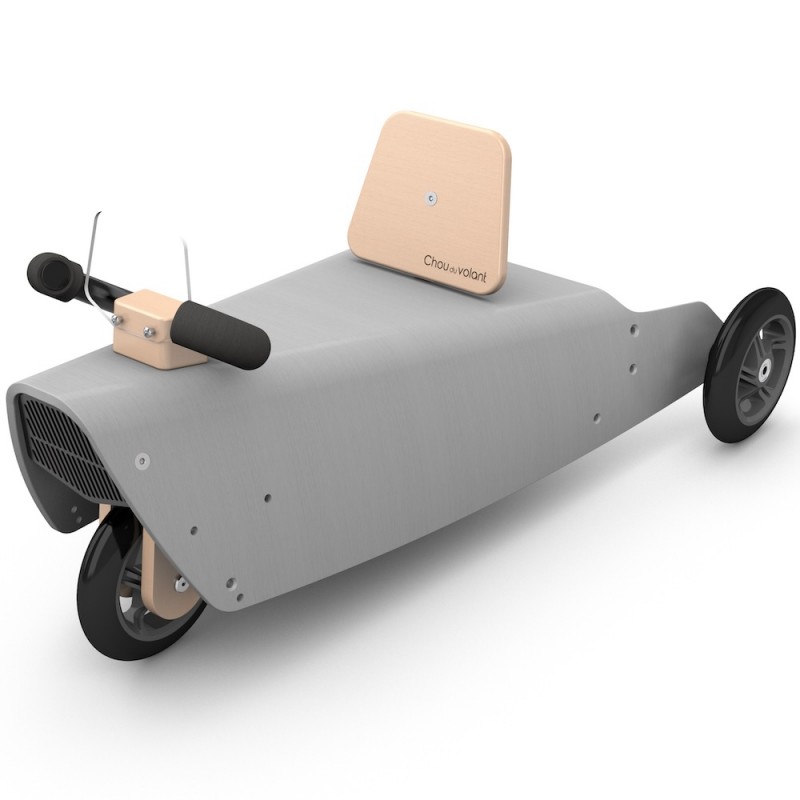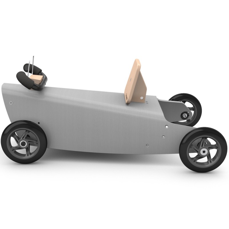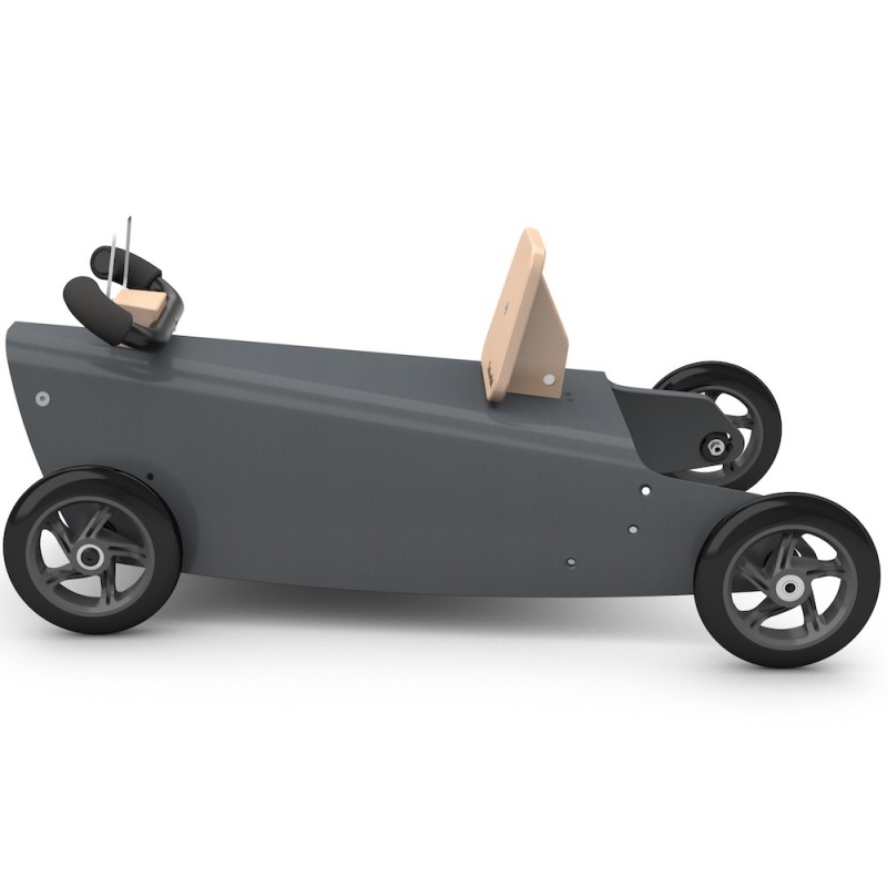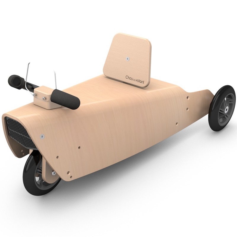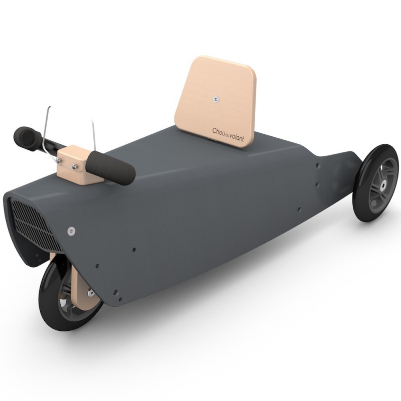 Il constitue aussi un porteur enfant à 4 roues (direction fixe) et à 3 roues (avec volant directionnel relié à une fourche mobile en bois), afin de permettre à l'enfant d'expérimenter des sensations différentes en matière de mobilité. Ce jouet design en bois peut également être utilisé, grâce à son arceau arrière démontable, comme un jouet à pousser et permettre ainsi à plusieurs enfants de jouer ensemble.