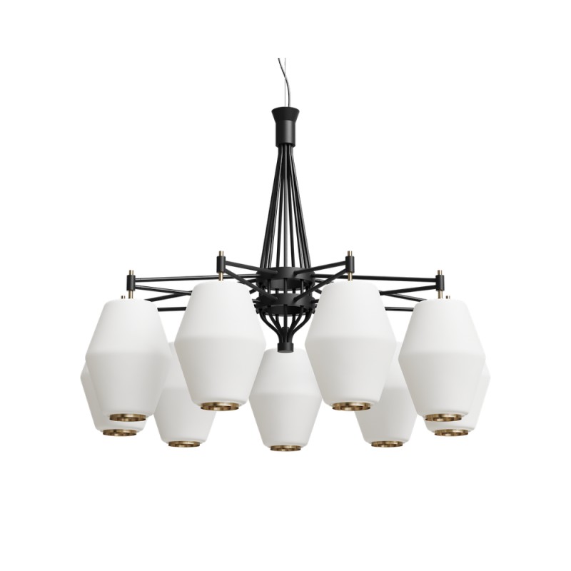 Ce lustre réédité reste fidèle à la vision du milieu du siècle dernier tout en s'adaptant à la vie contemporaine.
