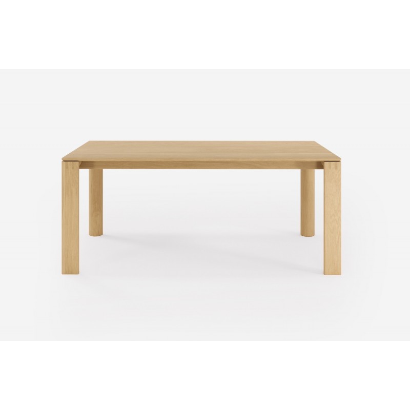 Cette table allie robustesse et élégance. Des détails subtils d’assemblage, associés à un jeu harmonieux de courbes douces et d’arêtes marquées, mettent en valeur le travail artisanal de sa conception tout en lui conférant un caractère à la fois chaleureux et moderne.